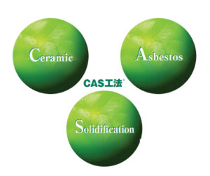 ※Cはセラミック(Ceramic)、Aはアスベスト(Asbestos)、Sはソリディフィケーション(Solidification)の、それぞれの頭文字をとってアスベスト含浸固化「CAS工法」とし、キャス工法の呼び名称としています。